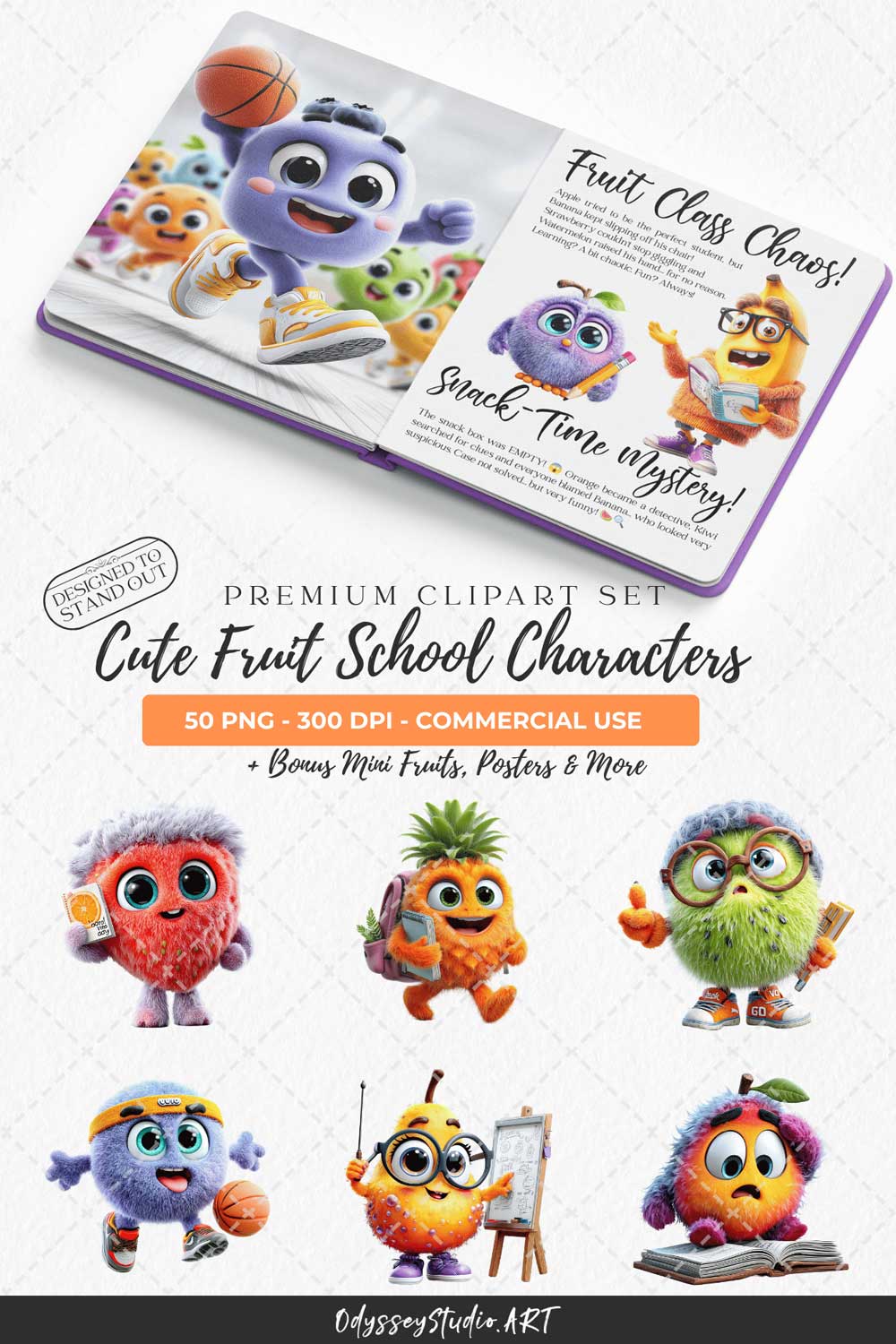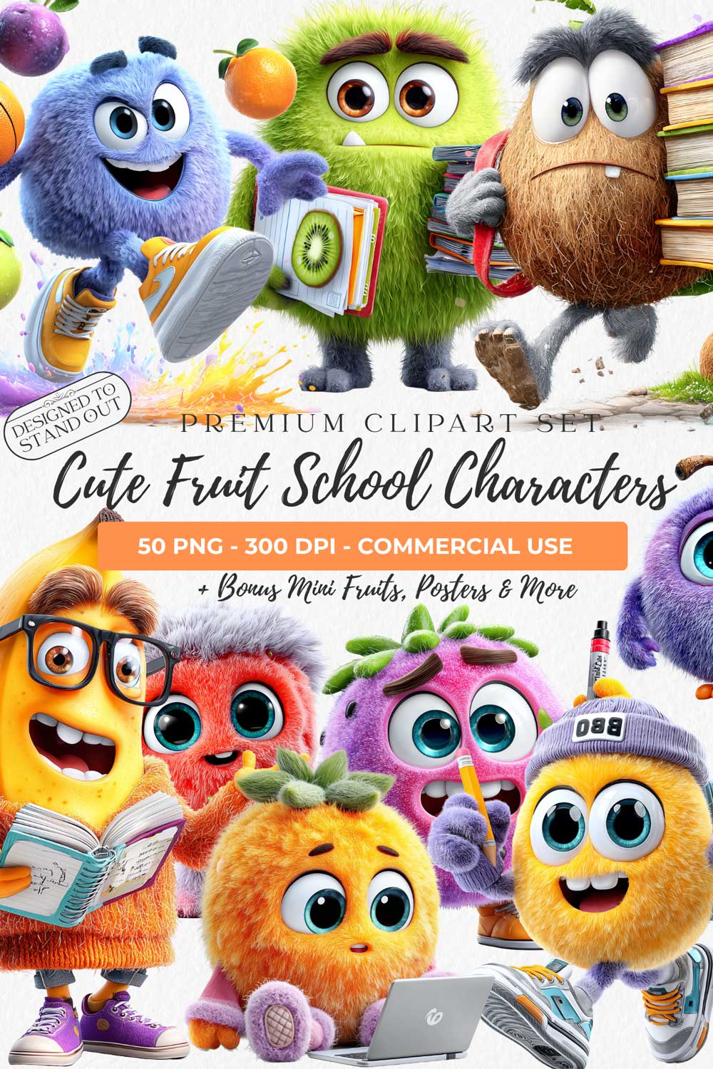 This cute fruit school clipart bundle is a premium collection of high-quality PNG graphics created for designers, teachers, homeschoolers and digital product creators who want to build engaging, visually beautiful educational materials for children.
