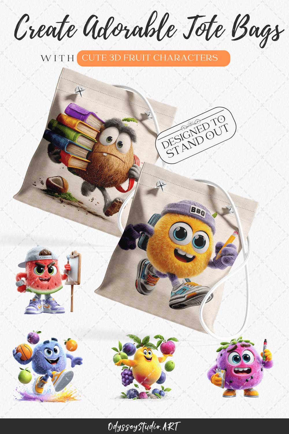 - Fluffy kawaii fruit characters – soft textures, big expressive eyes, friendly personalities