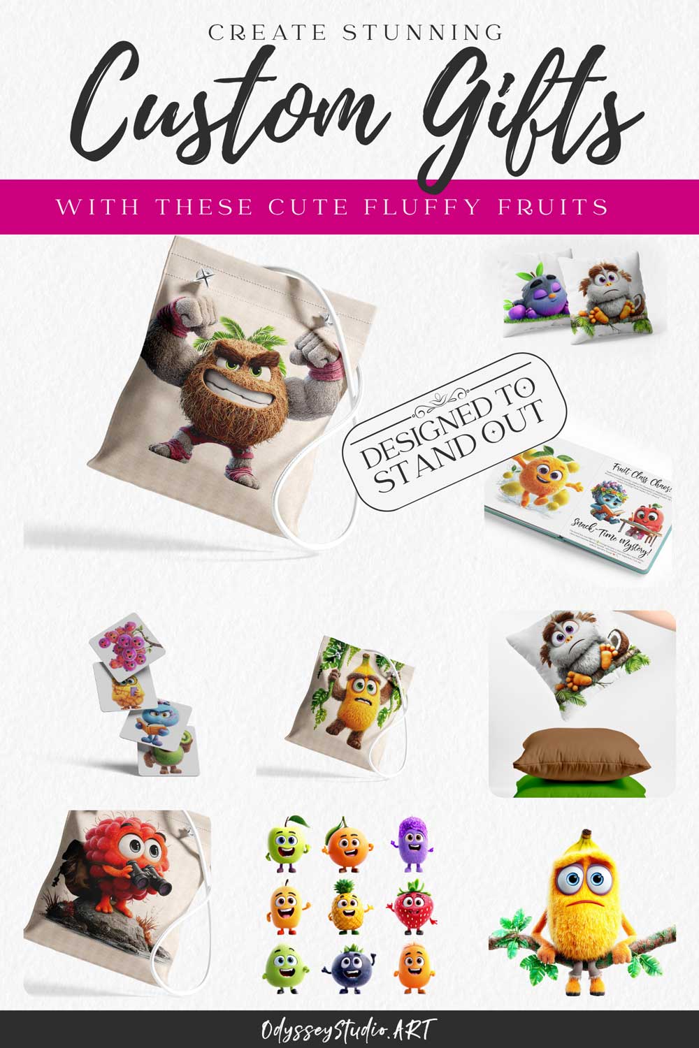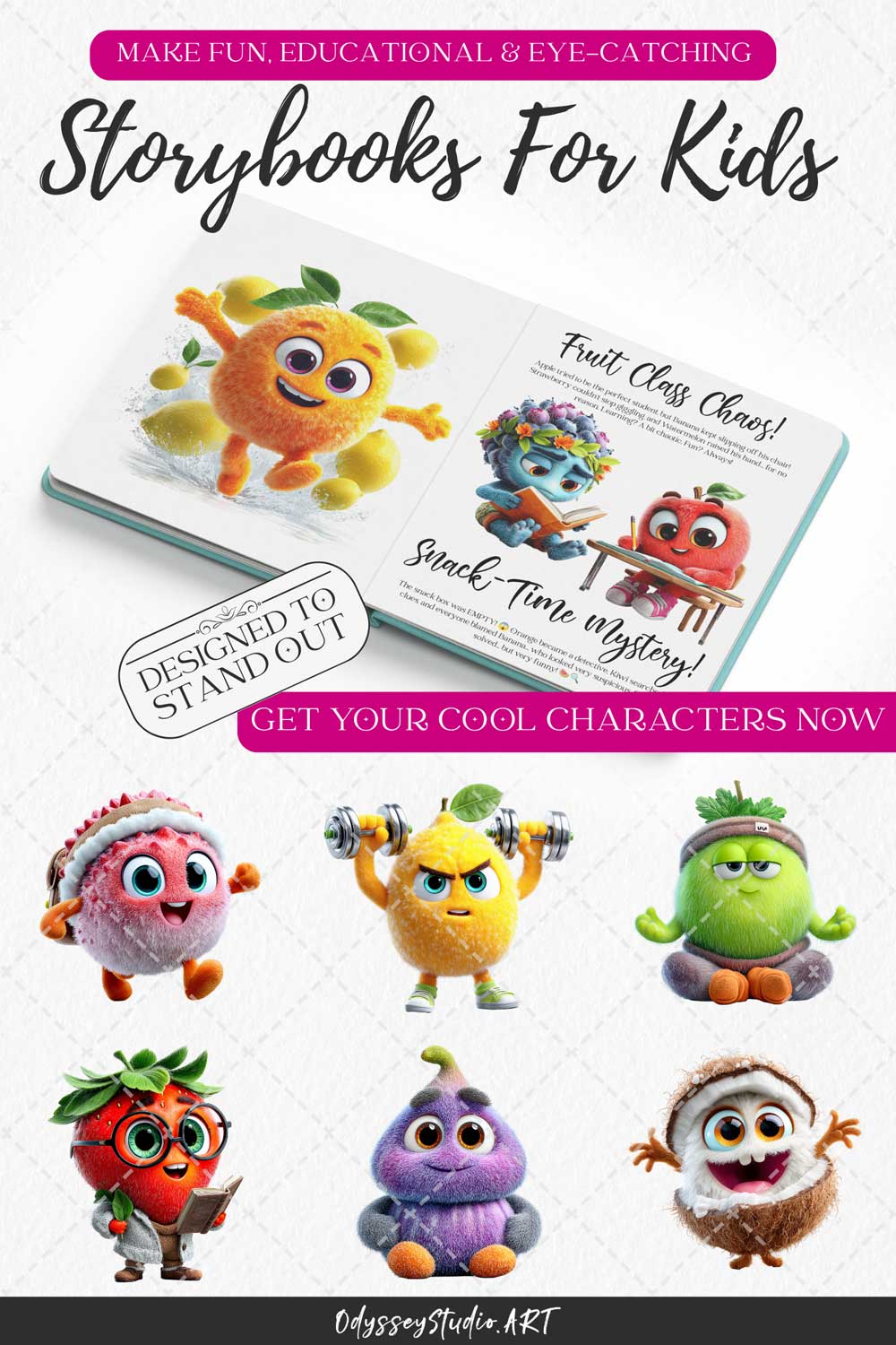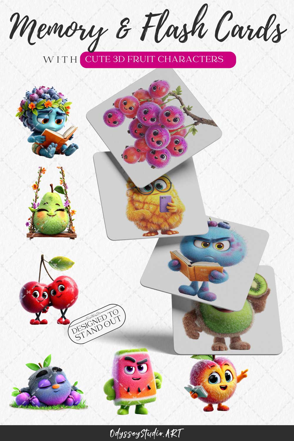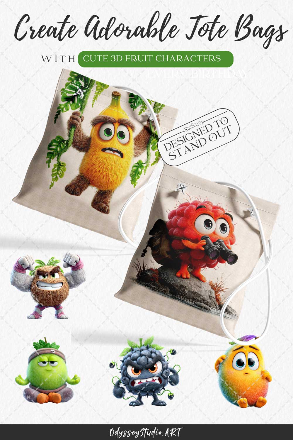 This bundle features a variety of fruit characters designed to feel alive, expressive and engaging: