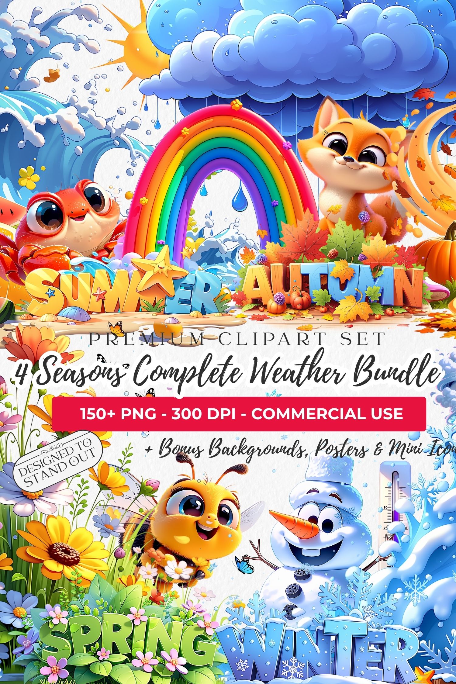 This is a high-quality Four Seasons Weather Clipart bundle created for teachers, parents, designers and content creators who want visually engaging educational materials for children.