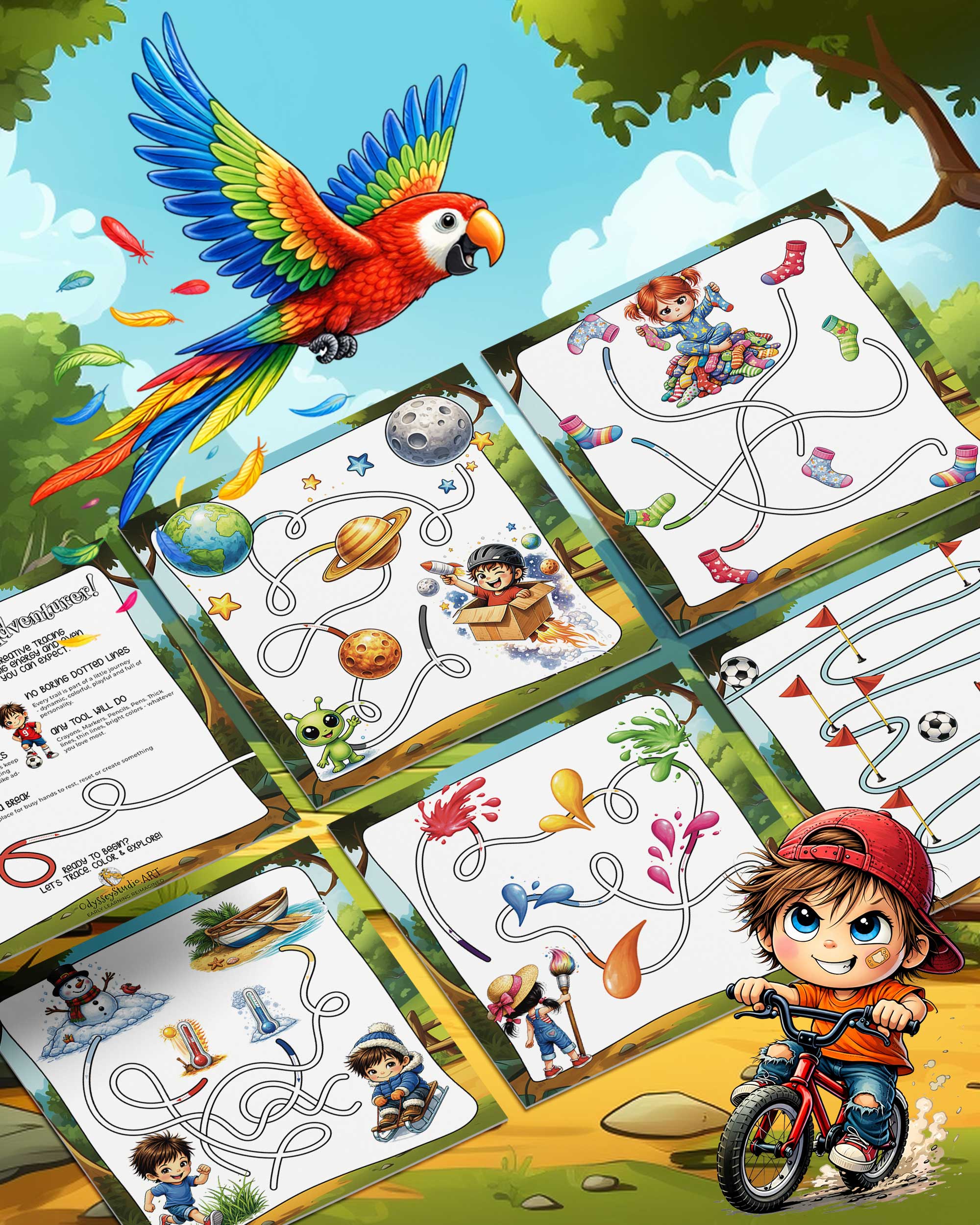 Children trace through playful, imaginative mini-adventures instead of repetitive drills.